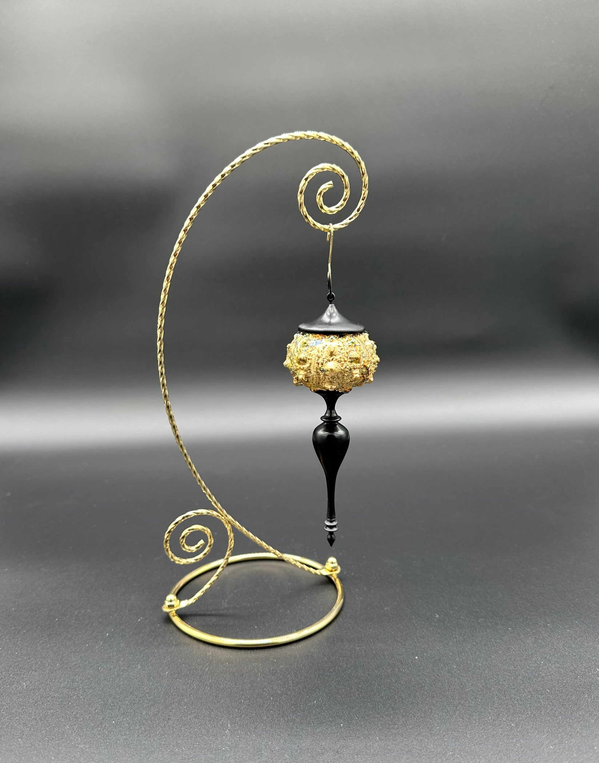 Sea urchin decorated with variegated gold leaf, hand turned black finial